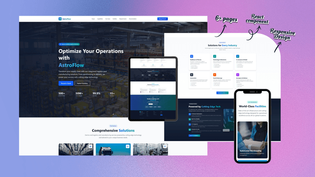 A modern, professional Astro.js template for logistics, manufacturing, and supply chain companies. Built with React, Tailwind CSS and TypeScript.