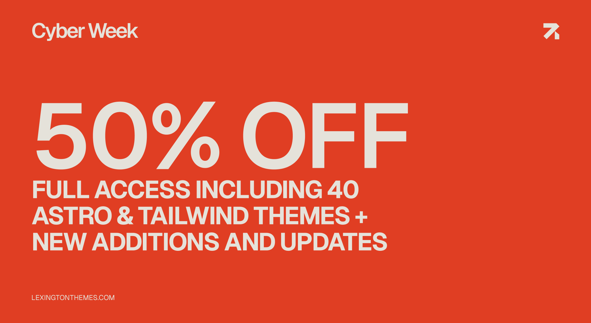 • All Themes in different categories & Future Additions – Access 40 Astro & Tailwind CSS themes, plus all future releases.