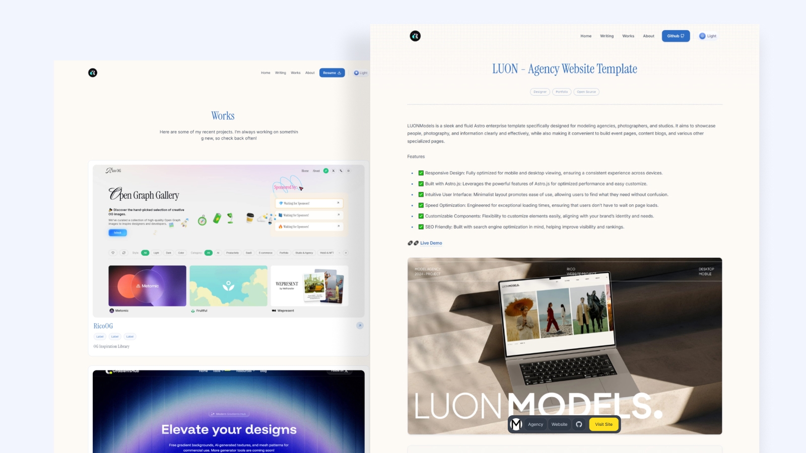 A modern, high-performance designer portfolio website template built with Astro. Features a retro blue theme, dark mode support, beautiful animations, and excellent user experience.