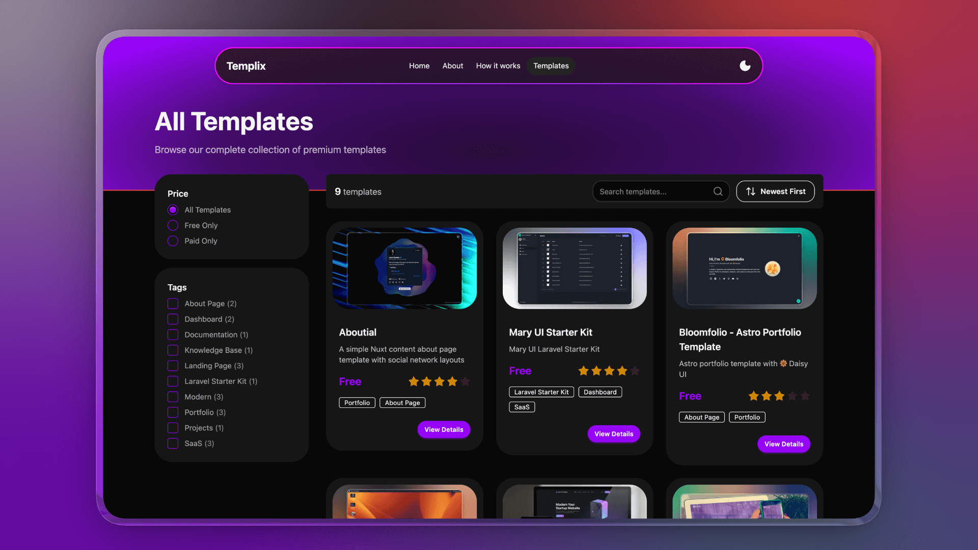 - Template marketplace (Astro themes, WordPress themes, UI kits)